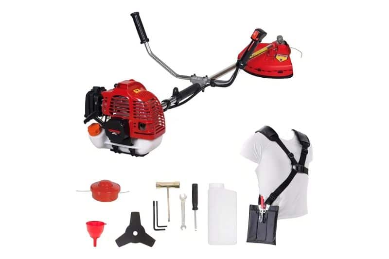 Com motor 51,7cc dois tempos, oferece potência para cortar grama e vegetação densa.